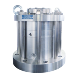 The seal is designed with “Fluilift” non contacting face technology, and is pressurized with an inert gas that lubricates the faces and provides a gas barrier between process and atmosphere.